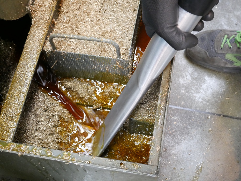 - Вместительный контейнер с системой наклона на 90°, шаровой кран для слива собранной жидкости