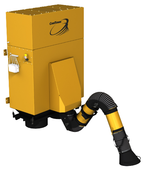 Комплектуется встроенным вентилятором в шумопоглощающем кожухе. Не требует установки глушителя шума благодаря особой конструкции выходного патрубка. Очищенный воздух направляется строго вверх, что исключает сквозняки и обеспечивает комфортные условия для персонала. Агрегаты НМСФ выпускаются в исполнениях: для подключения одного либо двух вытяжных устройств 160 мм или одного устройства 200 мм. Предусмотрен вариант крепления фильтров на стандартной напольной подставке.