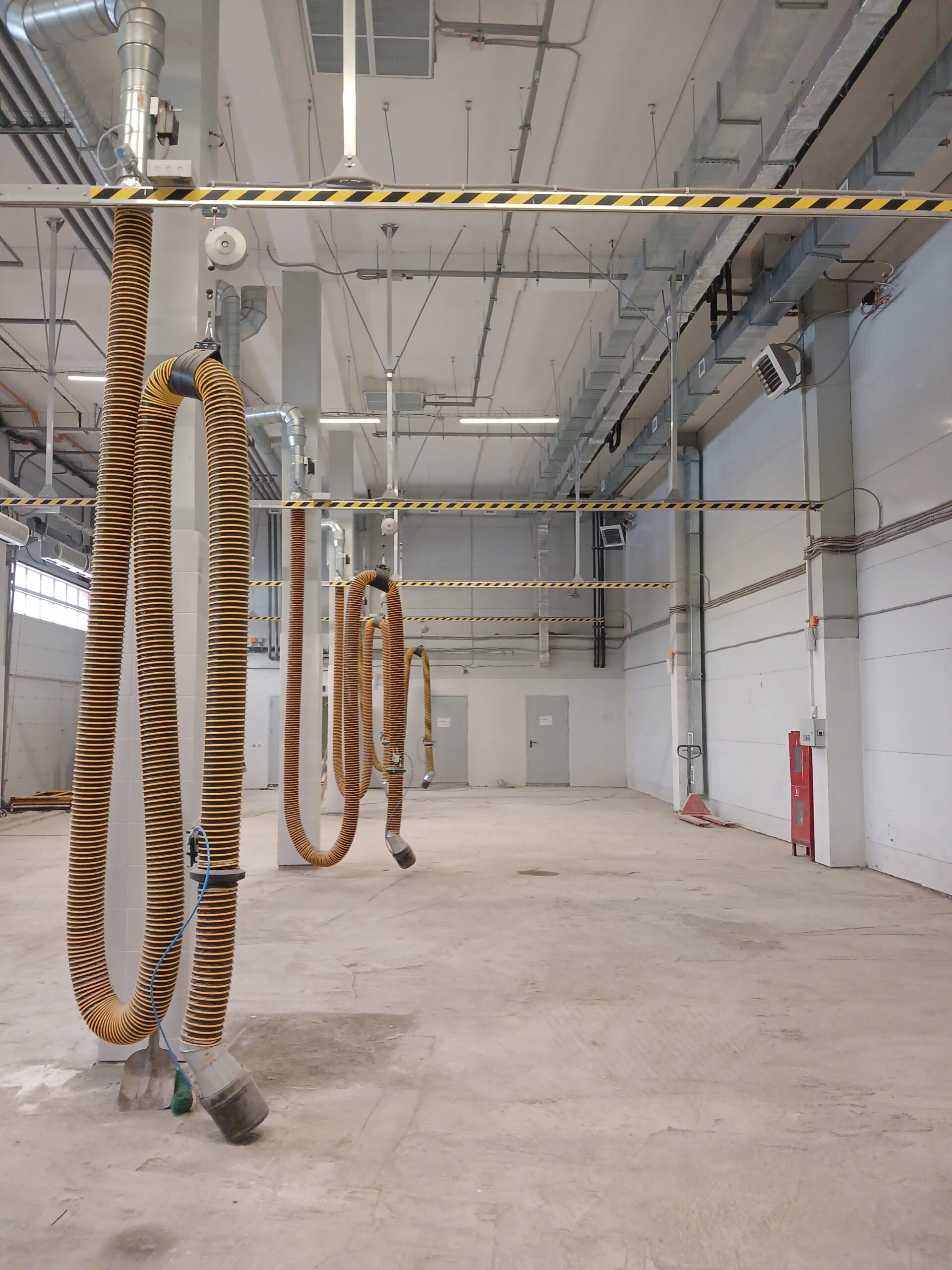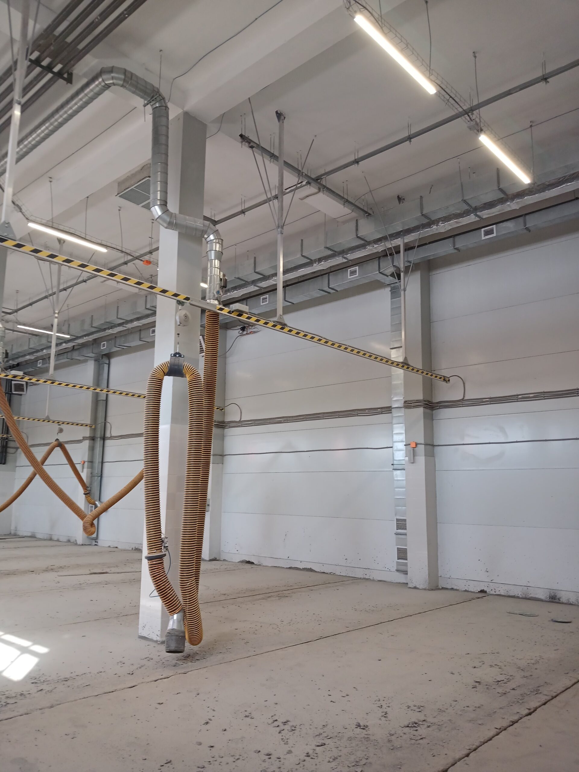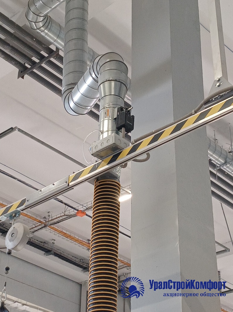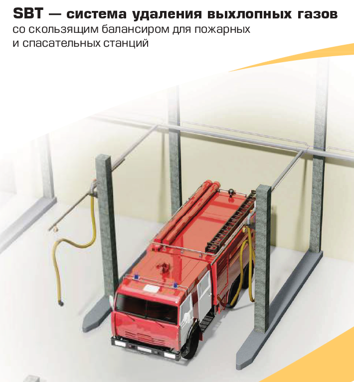 Решение: Система удаления выхлопных газов на базе рельсовой системы со скользящим балансиром  SBT производства СовПлим