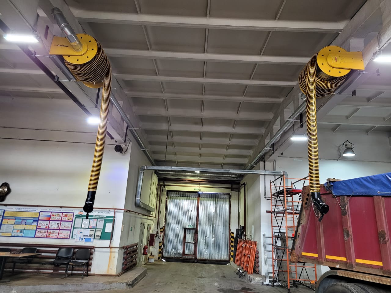 Удаление выхлопных газов на участке ремонта грузовых автомобилей