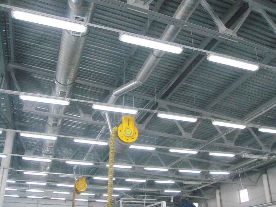 - вытяжной шланг намотан на барабан катушки с фиксатором и не загромождает рабочее пространство, обеспечивая свободное место для прохода и проезда под катушкой;